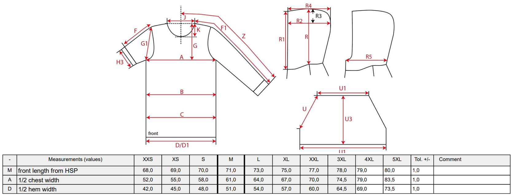 - Rippstrickbündchen an Ärmel und Saum